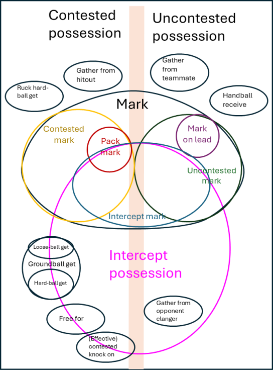 In accordance with the laws of the game, a contested possession is a possession achieved as a result of winning a contest. Includes hard ball gets, loose ball gets, contested marks, free kicks won in a contest, and contested knock-ons. I have no idea how important they are. Are they important? Or does it simply depend on your game style/plan, the type of players you have, your opposition on the day?