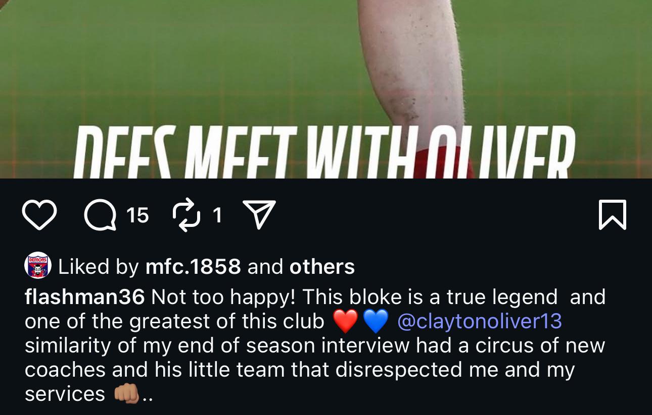 You follow a Club …you love some players more than others ..players come & go but the Club is always there & there is no Club without supporters. I might disagree ..get disappointed but I’ll always pay my membership because quite simply the MFC is a part of my life …