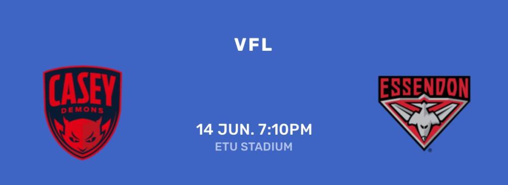 Head-to-head: Casey Demons 14-4; At ETU Stadium: Casey Demons 5-1; Streak: Casey Demons 10; Last Time: Casey Demons 13.12 (90) def Essendon 10.8 (68) – Round 16, 2024, Casey Fields