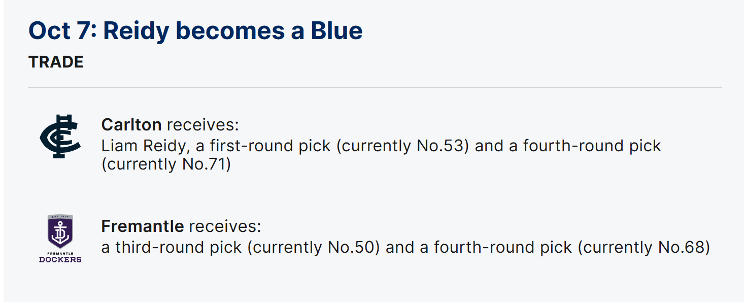 We'd also be thrilled with 2 first rounders. We would have got more last year if he was willing to go anywhere other than Carlton or Collingwood.