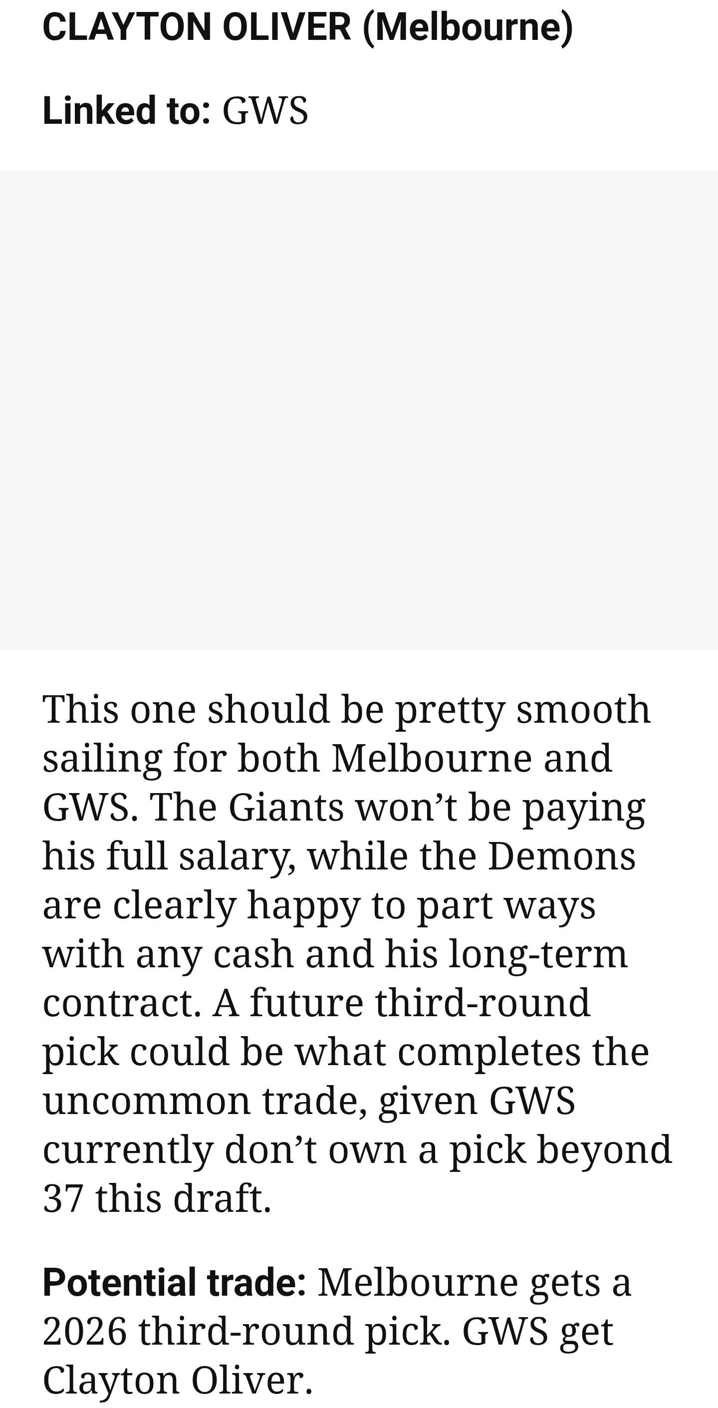 It is pretty clear the club views Clayton Oliver's impact on the performance of other players, the time and energy the takes up from coaches, board, and media, and likely also on the reputation of the club as a destination for recruits, as outweighing his 'good ordinary' on-field contribution in the last 24 months.