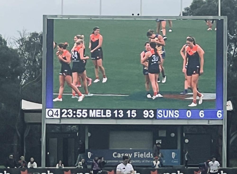 The forecast said wind. The ladder said mismatch. The scoreboard said obliteration. Melbourne didnโt just beat Gold Coast โ they dismantled them: 13.15 (93) to 0.6 (6). An 87-point obliteration, the Suns held goalless, and the Demons delivering their second-highest winning margin and third-highest score in AFLW history. Kate Hore surprised her coach by winning the toss and electing to kick to the Clyde end โ into the breeze. He should have known it was all part of the plan. Within seconds of the opening bounce Melbourne had goaled via the talented Megan โFitzyโ Fitzsimon and then with the wind at our backs in the last quarter, the Dees piled on 6 unanswered goals. The Suns had wilted, and Lily wished she wasnโt here. It all started with clean ball handling from the middle led by Tyla Hanks (25 disposals, 392 metres gained) whose sublime skills in traffic set the tone for a best-on-ground performance. Maeve Chaplin (8 marks, 638 metres gained) was brilliant mopping up from defence and spending time in the centre square. Fitzy (21 disposals, 15 tackles) had one of the best games of her career, and was everywhere โ tackling, clearing, and creating. The versatile Tayla Harris was even taking the kickouts, bombing to the centre square. For the Suns, they lost important midfielder Claudia Whitford to a first quarter hamstring, Taya Oliver was off for some time, while Clara Fitzpatrick and Jacq Dupuy were hurt late in the game. Havana Harris showed glimpses of her talent and Charlie Rowbottom threw herself into battle but needed more support. It was a dismal team effort from the Suns. The match The infamous Casey breeze was blowing a gale, but the Demons kicked into it like it was a tailwind. Paxy Paxman and Tyla Hanks led the early blitz, combining for 15 disposals in the first term. The Suns had some first quarter moments edging the inside-50 count but just couldnโt convert their chances. Melbourne did โ 3.2 to 0.3 at quarter time. With the goal tally building rapidly, it was notable that the names Zanker and Hore were missing from the score sheet. Kate had been mistiming her kicks in the wind but shone late in the game with two classy majors to take her career tally to 95 goals. The Suns were eclipsed, and the Dees had unleashed carnage. Match moment We must give praise to Ry Wotherspoon (17 disposals, 7 tackles, 3 marks, 338 metres gained) who was super impressive in a break-out game. The fourth-highest ranked player on the ground showcased her clean hands and strong presence around the ball.Her best moment came on the run, accepting a lovely Paxy handpass and snapping truly into the wind. Best game so far. Meggsโ musings Melbourne sits at 6 wins, 1 loss but all seven matches have been against teams outside the eight. Our soft draw is in stark contrast to last year however, we are pitted against top eight teams Swans, Geelong and Brisbane in the final home and away games. Fitzy, Maevo, and Hanksy โ everywhere, Demon dominators. Melbourneโs defence held Gold Coast goalless โ a rare feat in AFLW. Rhyce Shawโs first game coaching against Melbourne? Unforgettable for all the wrong reasons. The upcoming matches are the Bombers (Ikon), who kept the all-conquering North Melbourne goalless in the first quarter on Friday, and an interstate trip to Perth to play the Dockers. Coaches and Next Week Mick Stinear was pleased his team produced a four-quarter effort after last weekโs lapse against West Coast. He praised Fitzy who has excelled in the midfield and helps cover the loss of Liv Purcell. He believes his Dees are well set up to tackle the remainder of the season. Rhyce Shaw said his team did not show the level required to play AFLW today. Next week: Essendon at Ikon Park, Friday 7:15pm. Get along if you can - Princes Park is always a vibe. Cโmon, Dees. MELBOURNE 3.2.20 6.6.42 7.10.52 13.15.93 GOLD COAST SUNS 0.3.3 0.4.4 0.6.6 0.6.6 GOALS MELBOURNE Bannan Harris, Hore 2, Fitzsimon, Gall, Hanks, McNamara, Paxman, Pisano, Wotherspoon GOLD COAST SUNS Nil BEST MELBOURNE Hanks, Harris, Hore, Chaplin, Fitzsimon GOLD COAST SUNS Harris, Rowbottom, McLaughlin, Clayden INJURIES MELBOURNE Zanker (head knock) GOLD COAST SUNS Whitfort (right hamstring), Fitzpatrick (left arm), Dupuy (head knock) CROWD 1,557 at Casey Fields- 2025 Grand Final