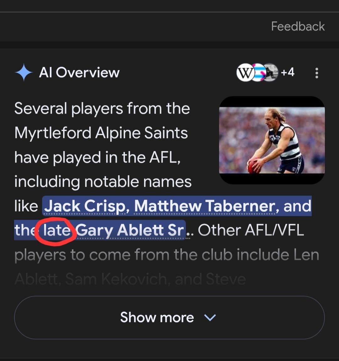 So, 🦗🦗🦗, somewhat! 😏 Amazingly - for what he came up with, not that he did come up with something, of course - @Demonstone has given me 2 answers that apply and are direct consequences of the intended actual answer. He has the Victoria Cross of 'participation' awards accordingly. But the hard-currency medals are all still up for grabs. The answer is not related to footy, or to MFC, or to anything beyond them. It's all there right in front of you on the page in the OP.