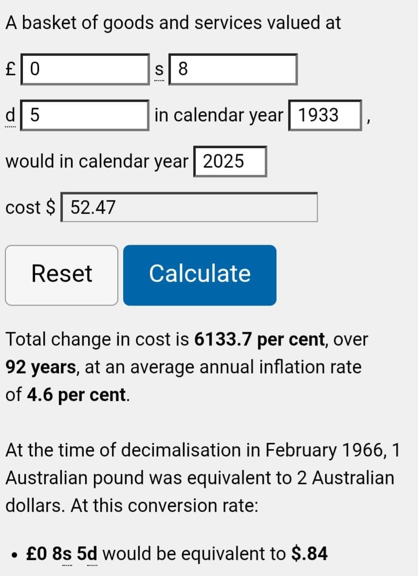 Turns out, only 'armchair membership' size! According to the Reserve Bank's calculator, Possibly a bit more than the $52.47 when the costs as percentages of income are compared...- The New Home Base & Training Ground Thread