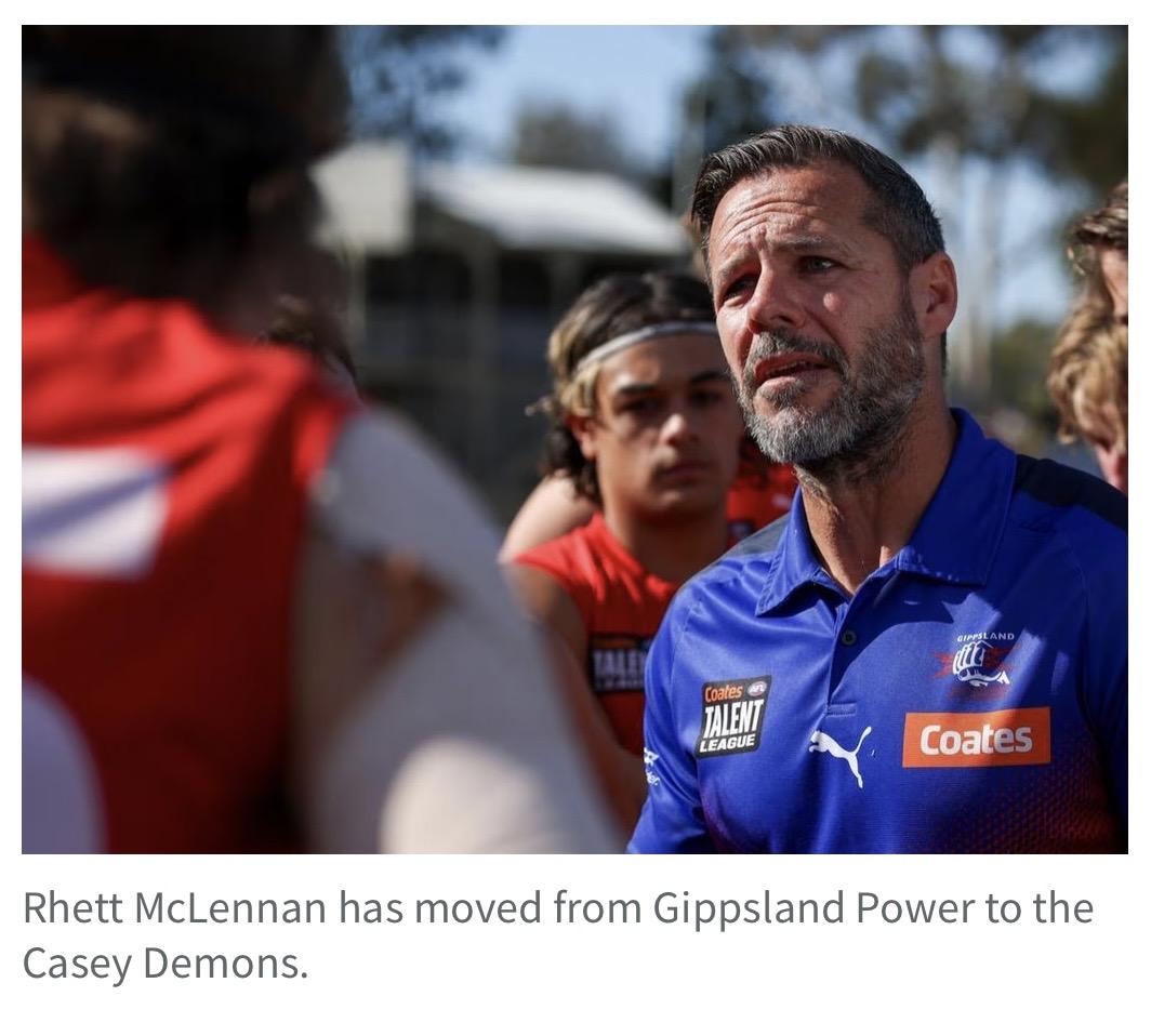Rhett McLennan on Casey Demons coaching job, every signing for 2026 VFL seasonA delisted Bomber, an injury-hit former Roo, one of Kozzie Pickett’s relatives — and a host of kids from Gippsland. New coach Rhett McLennan has reason to be bullish about his Casey Demons stocks. Rhett McLennan will not moan about the miles he must travel to be a VFL coach, nor any early-morning starts. The new Casey Demons senior coach and Melbourne assistant lives at Leongatha, dairy-farming country in South Gippsland, and he knows many farmers in the district who begin their days in darkness. “If you’re from Leongatha and you complain about getting up at 4.30 in the morning, I’ve got 100 mates who will tell you to grow up,’’ he said. From the ‘Gatha, McLennan makes the hour-flat trip to Casey Fields in Cranbourne east or, depending on Melbourne’s training schedule, the longer journey into AAMI Park. Both are a straight run compared to when he was coaching Gippsland Power in the Talent League and he was travelling to Morwell. Along the way he saw more hills than a mountain goat. “If you want any traffic reports on the Monash or the South Gippsland Hwy or you want any good podcast recommendations, I’m your man,’’ he quipped. “Look, I’m very lucky that I love driving. It doesn’t worry me at all. I actually quite enjoy hopping in the car and seeing a bit of the country.’’ McLennan — “Rooster’’ to many of the people he’s encountered in football — is new to Casey but has taken in quite a few familiar faces in his five months at Casey Fields. He had coached Gippsland Power since 2019. By his count, 13 players he guided at Power are now at Casey, including a bunch of first-year hopefuls who followed him from the Talent to state league. The youngsters saw the VFL as the next step in their football. McLennan did not. Melbourne asked him if he was interested in applying for the Casey position, made vacant when Taylor Whitford was promoted as the Demons’ head of development. Until that phone call, he had given little thought to the VFL. “At that time in my life, the timing was perfect,’’ McLennan said. “I was happy to go through the interview process and I was just very lucky and very thankful that the Melbourne footy club and Casey agreed to give me the opportunity. “To be honest, I’m really head down, bum up in the craft. I don’t really have a lot of ambition in regards to coaching. I just love doing it. Wherever that is, I just want to do as good a job as I possibly can. To get to do that in the VFL … there’s been times in the last few months where I’ve sat back and thought, ‘Wow, I can’t believe I’m doing this’.’’ McLennan was also in charge of the Vic Country Under 18 team last year after previously serving on its panel of assistants. AFL Victoria’s Lee Fraser regarded McLennan as a “very talented’’ coach. “He understands the game really well and he’s got a unique skill of simplifying it for the players,’’ Fraser said. “It was really suitable to our Vic Country program because obviously we haven’t got the kids for a long time. He was able to build connection with the players and then express in a simple way the way he wanted them to play.’’ Fraser thought McLennan was ready to go to the next level and believes he has a “really exciting future’’. McLennan is full-time with the Demons, just as he was full-time at the Power. The biggest difference, he said, was in the “contact hours’’ with players. The Power draw from a large region – a few players have six-hour round trips for training - and come together only one night a week during the season. “To now have players three nights a week, that’s been really interesting,’’ McLennan said. “It gives us that opportunity to get across to the VFL-listed guys what we’re trying to do in following Melbourne’s game plan, which is really exciting, attacking-based.’’ He inherits a VFL team that reached the finals last season under Whitford, eventually falling to Frankston under lights at Kinetic Stadium. Of the VFL-listed players who took on the Dolphins, Mitch Hardie, Riley Baldi and Noah Yze have moved on. But the Demons have brought in delisted Kangaroo Miller Bergman, former Essendon dasher Luamon Lual and ex-Fremantle wingman Ethan Stanley from Box Hill Hawks. Then there’s the Gippsland connection: top Traraglon onballer Luis D’Angelo and his teammate Joel Scholtes, Nar Nar Goon pair Nate Pipicelli and Clancy Pope, Sam Hoghton from Officer and Jehi Esler from Tooradin-Dalmore. All are former McLennan-coached Gippy Power players. Jonah Walker, Harry Tatterson, Luke Cheffers and Jobe Scapin were with the Power last year. Toby Sinnema, Jasper Russell, Louis Hodder, Tairon Ah-Mu (all Dandenong Stingrays) and Marcus Krasnadamskis (Eastern Ranges) were also in the Talent League. Berwick duo Braedyn Bowden and Tahj Delarue are new to the list too. All up the off-season produced 18 recruits; Casey Demons football manager Garry O’Sullivan’s trusty pen was in play. O’Sullivan isn’t surprised the club secured so many Talent League graduates. He said McLennan – whose long playing career took in Queensland under-age selection and a senior premiership at Leongatha - had an “amazing’’ knowledge of the player-pathway system. “Someone had a light-hearted dig at us, saying, ‘We know why you appointed him – he knows all the good young kids!’’’ O’Sullivan said. He said McLennan was “one hell of a communicator’’, from his dealings with players to setting up a Whatsapp group for local coaches who have players on the Casey list. O’Sullivan has also seen a “little bit of the old’’ about McLennan. “Some of his old-fashioned traits combine magnificently with the modern way of coaching,’’ he said. “He’s well rounded and well grounded in all aspects for this level of footy.’’ McLennan has handed over the c