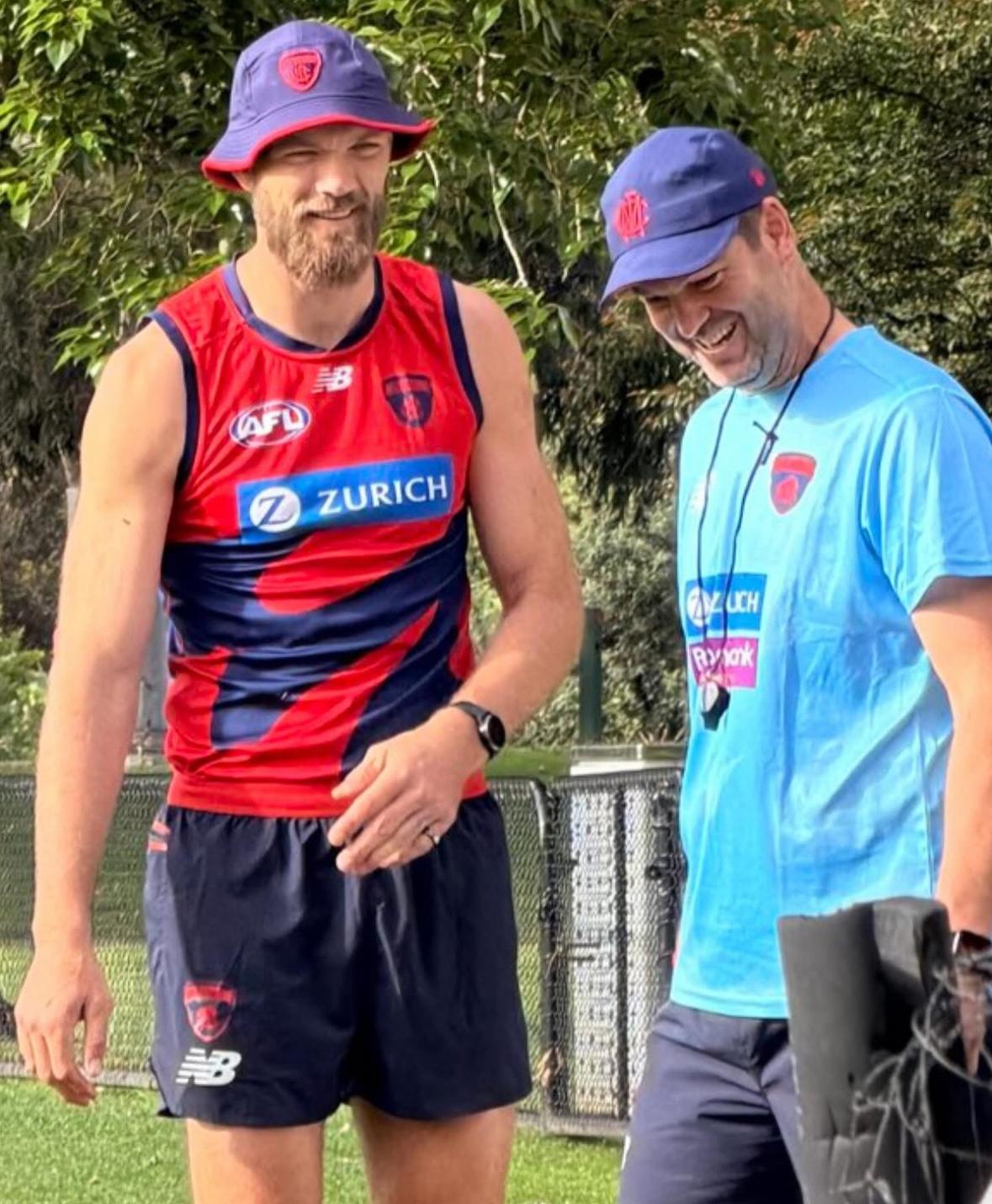 Maevo said she’s hopeful of a return this week but seeing her rehabbing with Liv didn’t fill me with confidence 😞 Blaithin came off early in the session to have her leg taped (very well-taped). Idk what the issue is. Mick said he told the players to enjoy the win on Saturday night then it was straight back to focussing on this week. He seemed quite relaxed and like some of the immense pressure of last week had lifted. He’s such a gifted communicator, I love watching him interact with the players. It was nice to talk to Kate Roffey who came to watch the girls train. She’s still a passionate Dees W fan.