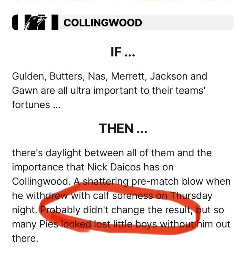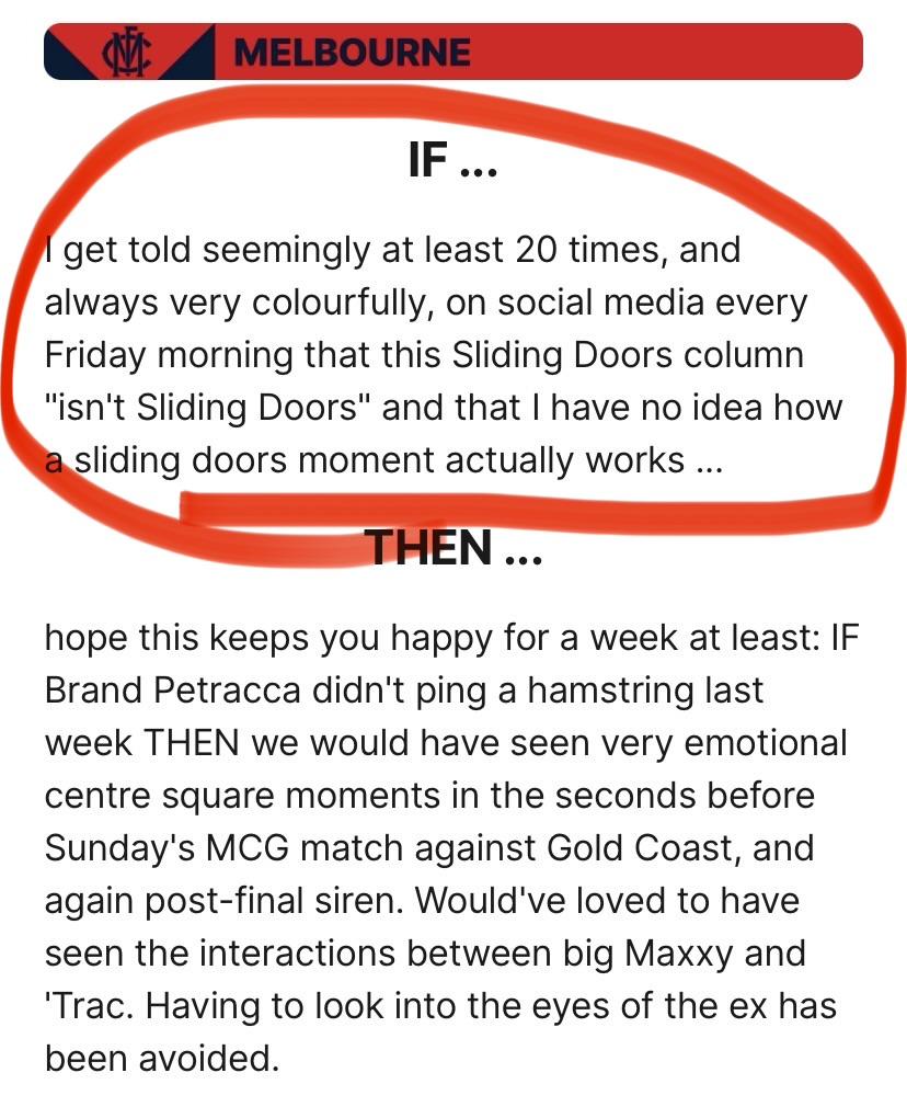 So, there’s daylight between the club champions listed and Naicos yet his absence probably didn’t change the result… huh? And that’s because it isn’t “sliding doors” and you do have no idea how a sliding doors moment works. It takes astute Melbourne supporters to point it out. PS “seemingly”? Either they do or they don’t. Which one is it?