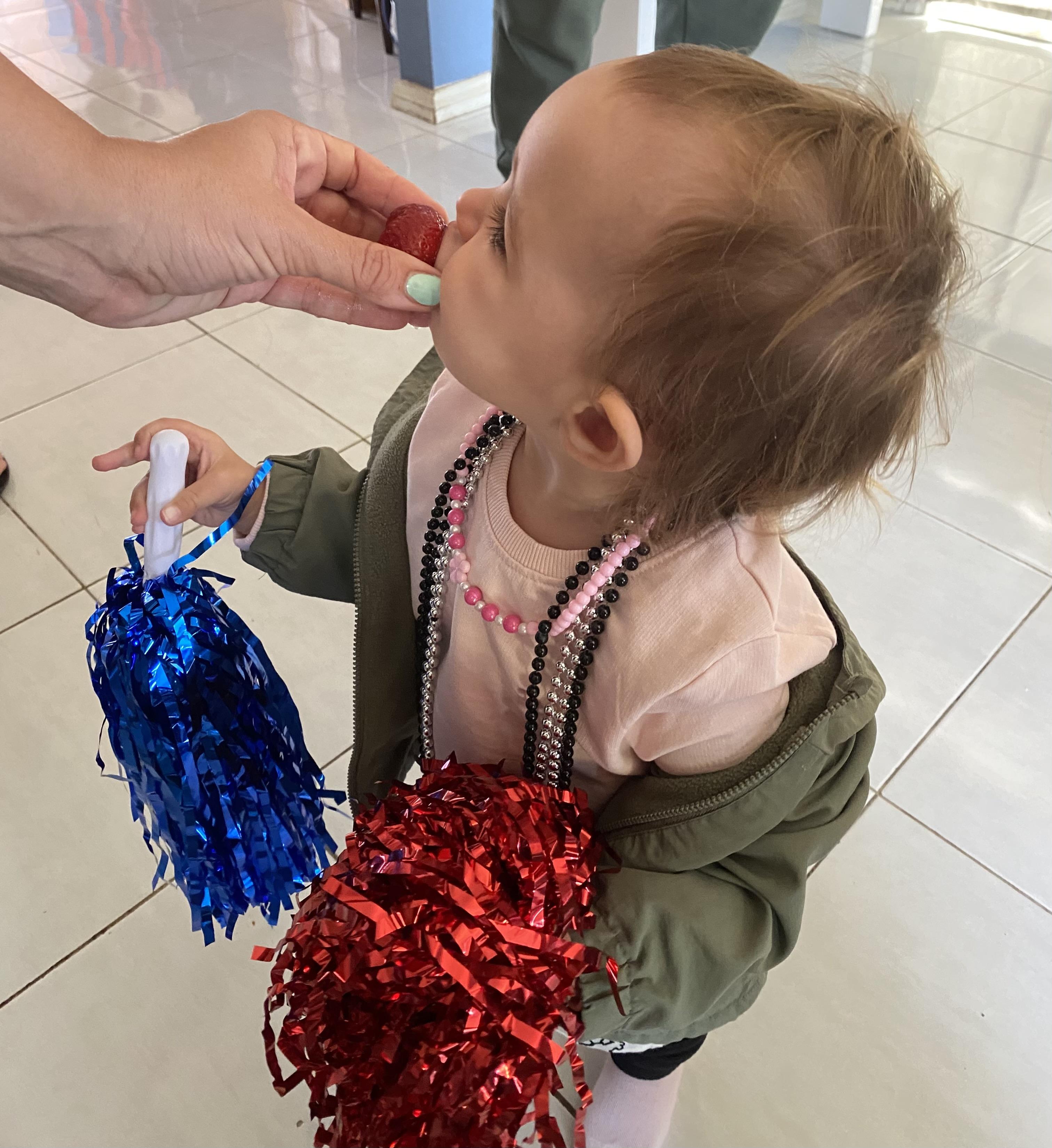 My little grandy found these pom-poms at mine and immediately fell in love with them, to the point where she refused to let go of them. She even napped while holding them. This started off as good news and it still is, to me. To her parents, not so much. 🤭