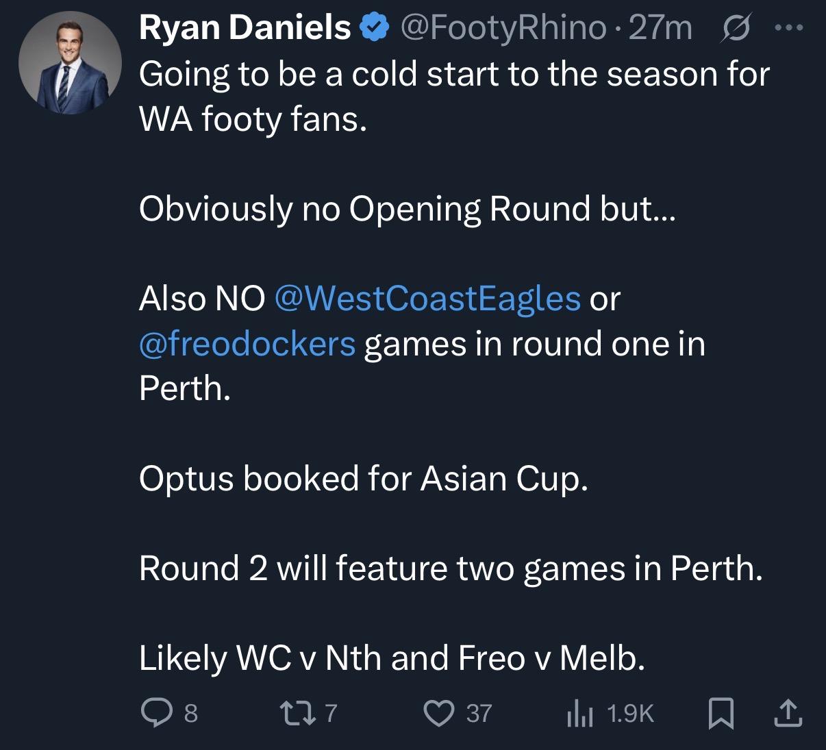 Did someone say we’re off to tassie to play hawthorn 😳 I wasn’t expecting that and now I’m not expecting a good fixture for us at all now