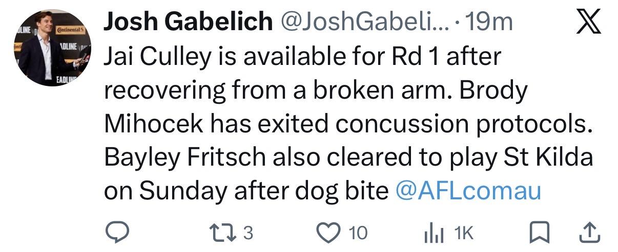 Culley and Fritta all good and ready for selection this week - Steven king on Sen