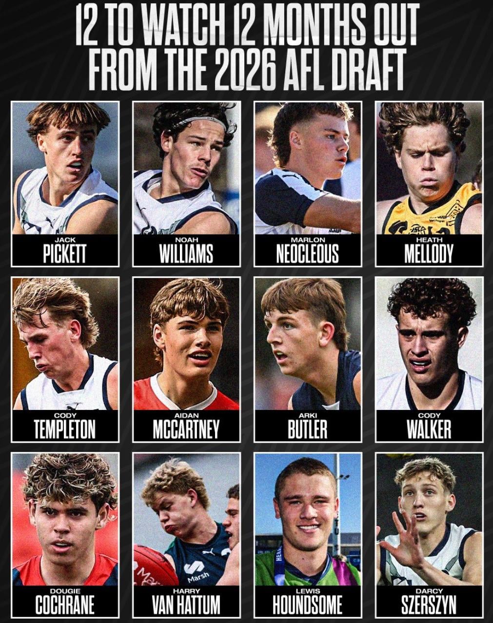 The starting order for next year’s National Draft based on 2025 finishing positions with the current points system. This is subject to possible further amendment as it was compiled on information accumulated from various sources that still need to be cross-checked. As time progresses, we can expect plenty of changes all the way through to next year’s draft. ROUND ONE 1 West Coast Eagles (3,000) 2 Richmond (2,481) 3 North Melbourne (2,178) 4 Essendon (1,962) 5 Melbourne (1,795) 6 Port Adelaide (1,659) 7 St Kilda (1,543) 8 Carlton (1,443) 9 Carlton (1,355) received from Sydney Swans in 2025 10 Western Bulldogs (1,276) 11 Fremantle (1,205) 12 GWS Giants (1,140) 13 Melbourne (1,080) received from Gold Coast Suns in 2025 14 Adelaide (1,024) 15 Hawthorn (973) 16 Collingwood (924) 17 Geelong (879) 18 Brisbane Lions (836) ROUND TWO 19 West Coast Eagles (796) 20 Richmond (757) 21 Carlton (721) received from North Melbourne in 2025 22 Essendon (686) 23 GWS Giants (653) received from Gold Coast in 2025, received from Melbourne in 2025 24 Port Adelaide (621) 25 Hawthorn (590) received from West Coast in 2025, received from St Kilda in 2025 26 Port Adelaide (561) received from Carlton in 2025 27 Sydney Swans (533) 28 Western Bulldogs (505) 29 Fremantle (479) 30 Hawthorn (454) received from GWS Giants in 2025 31 Carlton (429) received from Gold Coast Suns in 2025 32 Adelaide (405) 33 St Kilda (382) received from Hawthorn in 2025 34 Collingwood (360) 35 Geelong (338) 36 Brisbane Lions (317) ROUND THREE 37 West Coast Eagles (297) 38 Richmond (277) 39 North Melbourne (257) 40 Adelaide (238) received from Gold Coast in 2025, received from Essendon in 2025 41 Brisbane Lions (220) received from Collingwood in 2025, received from Melbourne in 2025 42 Port Adelaide (202) 43 St Kilda (184) 44 Sydney Swans (167) received from Carlton in 2025 46 West Coast Eagles (150) received from Hawthorn in 2025, received from Sydney in 2025 46 Western Bulldogs (134) 47 Fremantle (118) 48 Melbourne (102) received from GWS Giants in 2025 49 Port Adelaide (86) received from Gold Coast Suns in 2025 50 Adelaide (71) 51 Brisbane Lions (57) received from Hawthorn in 2025 52 Sydney Swans (42) received from Collingwood in 2025 53 Geelong (28) 54 Carlton (14) received from Brisbane Lions in 2025 ROUND FOUR 55 West Coast Eagles (0) 56 Richmond (0) 57 North Melbourne (0) 58 Essendon (0) 59 Hawthorn (220) received from Melbourne in 2025 60 Port Adelaide (0) 61 St Kilda (0) 62 Carlton (0) 63 Collingwood(0) received from Sydney Swans in 2025 64 West Coast Eagles (0) received from Western Bulldogs in 2025 65 Fremantle (0) 66 Collingwood (0) received from GWS Giants in 2025 67 Gold Coast Suns (0) 68 North Melbourne (0) received from Adelaide in 2025 69 Sydney Swans (0) received from Hawthorn in 2025 70 Collingwood (0) 71 Geelong (0) 72 Brisbane Lions (0) - From the vault