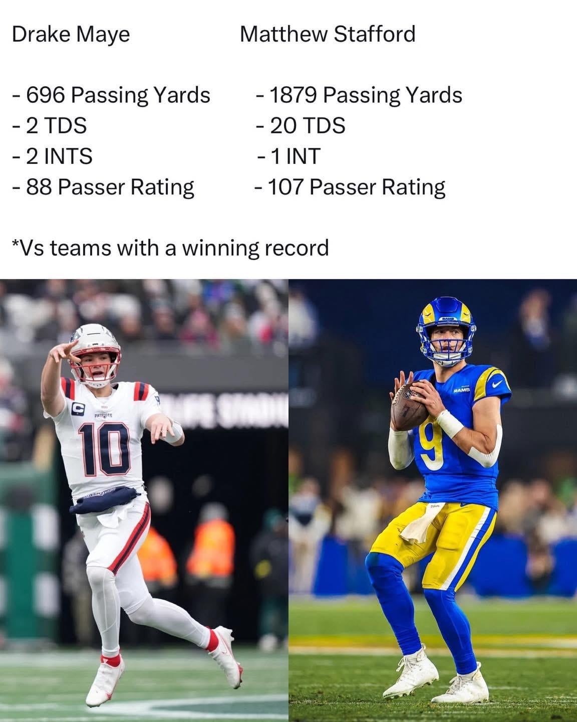 For the Maye vs Stafford MVP discussion. The only other thing I’d like to know is games vs top 10 defences.
