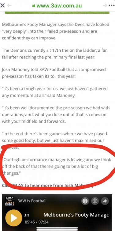 Fritsch up forward is a game changer. Begs belief why he was down back for so long. Wagner (Older) did well as well I thought, was hard at it in contests winning several. Brayshaw did well keeping Yeo quiet, maybe that was the trade off of him going back into the center. Petty worth continuing up forward, Lewis also. Poor games from Preuss, Lockhart and female umpire