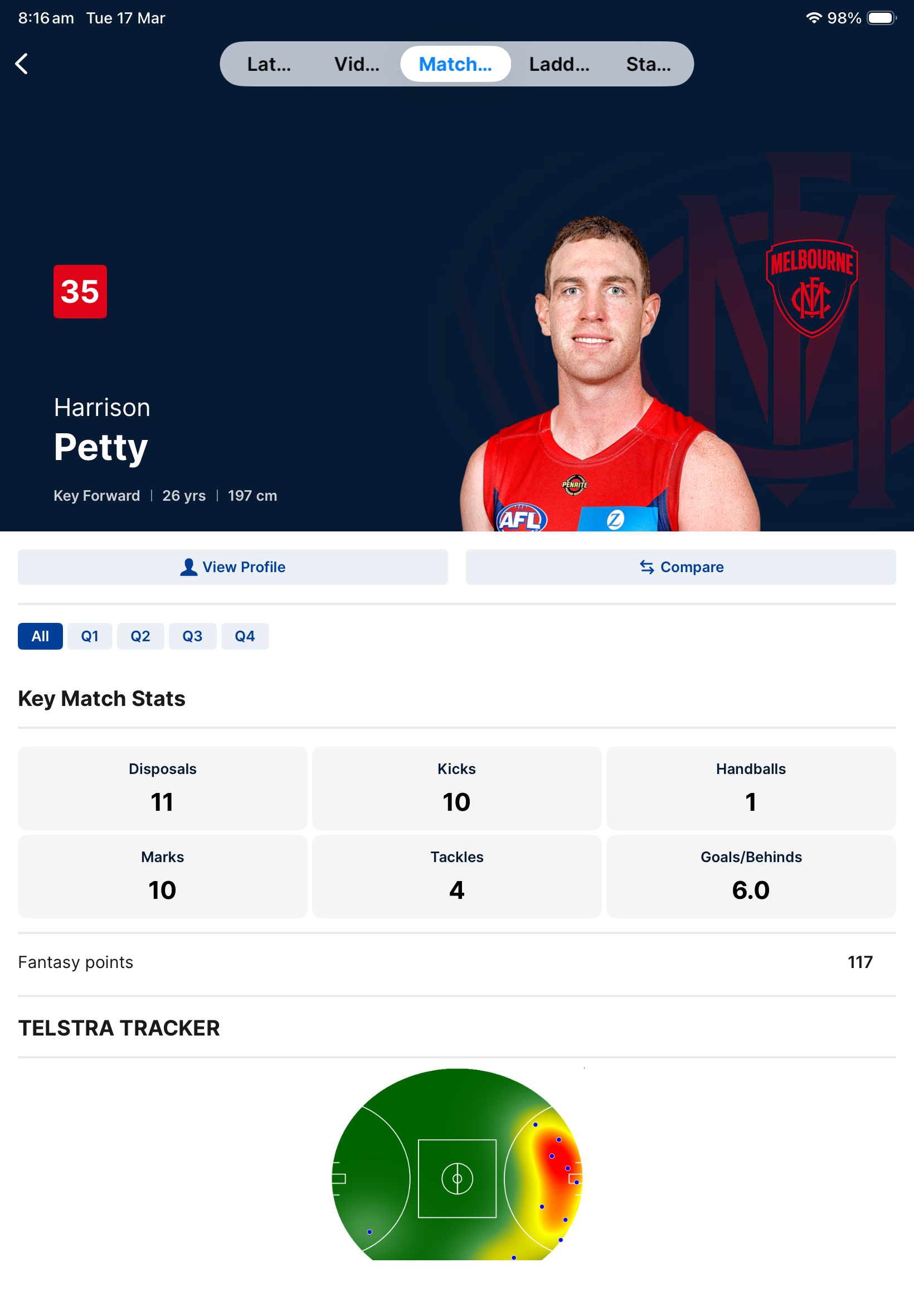 Yawn this game style we are seeing now is starting to resemble basketball too much. The mid ground battles for yardage, a turnover or stoppage and ball up have all but disappeared, it’s just running the ball from end to end for shots at goal. Not particularly enjoying watching others play so it will be interesting to see us in action on Sunday.